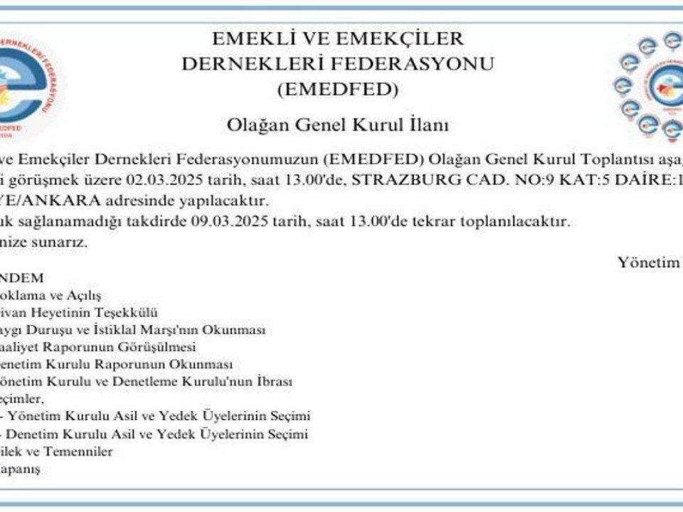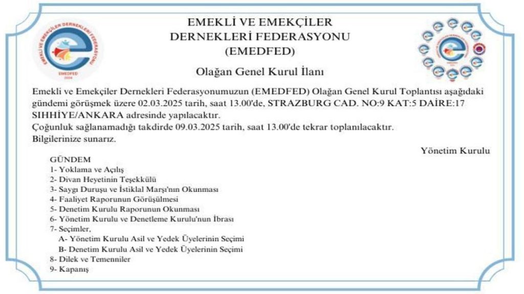 Kuruluş Sonrası 1.Olağan Genel Kurul Toplantı bildirimizdir. Emekli ve Emekçiler Dernekleri Federasyonumuz 9 dernekle kuruldu. 12 derneğimizle yolumuzdayız. Yeni katılım yapacak derneklerle 81 il de mücadeleye […]