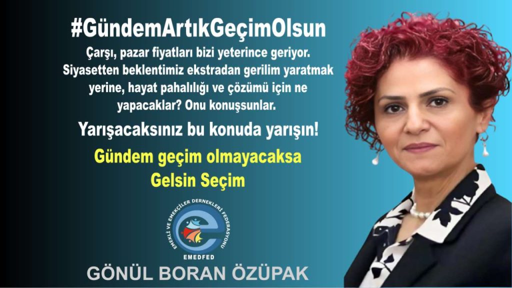 Emekli ve Emekçiler Dernekleri Federasyonu (EMEDFED) Başkanı Gönül Boran Özüpak, sosyal medya platformu X hesabından yaptığı #GündemArtıkGeçimOlsun paylaşım ile emeklilerin ve çalışanların geçim sıkıntısına vurgu yaptı. Özüpak’ın […]